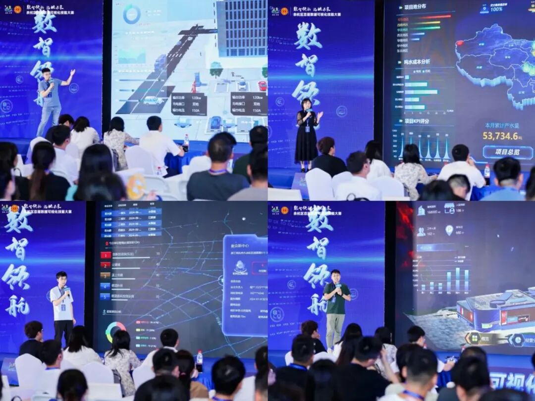 本次大赛以数据可视化竞赛的形式,聚焦发展新质生产力,以赛促练,以赛促训,旨在培养一支推动余杭区高质量发展的知识型、技术型、创新型劳动队伍。经过为期一个月的赛前培训、理论考试与参赛作品提交,12支优秀团队从28支参赛队伍中脱颖而出,进入总决赛。远眺科技为总决赛全程提供平台服务和技术支持。作为本次大赛唯一技术支持方,远眺科技为大赛提供了捷码全技术链开发平台、配套平台培训、以及技术支持服务,助力参赛选手高效开发,轻松落地作品创意。在本次总决赛中,各路参赛队伍需对基于捷码搭建的可视化作品进行7分钟路演陈述。在这之前,基于捷码强大的产品能力,以及系统、专业的捷码培训,各路参赛选手根据所在行业实际情况,自由发挥创意并进行开发,在短短半个月内创作了许多在可视化效果、实用性、创新性等方面都表现俱佳的作品。经过专业评委的严格评审,并结合理论考试与路演成绩的总排名,最终有6支团队获得名次。6支获奖团队都对本次比赛、平台使用发表了感言。其中,大赛冠军团队-坚赞数科队队长童正义说:“我们参加这个比赛主要是数字科技这一块。我们之前做过一些基于传统模式开发的可视化产品。来到比赛接触远眺低代码平台后,在使用中感觉对我们开发效率的提升比较多,开发的效果更加的好。捷码这个平台确实给我们实际开发中的帮助特别大。”在本次大赛中,除了获得名次的作品外,其它基于捷码打造的作品在可视化效果、数据理解和分析、创新性、实用性等方面的表现也都可圈可点,这一方面源于每支参赛团队对本次大赛的全力以赴,另一方面,也离不开远眺科技强大的技术支持。