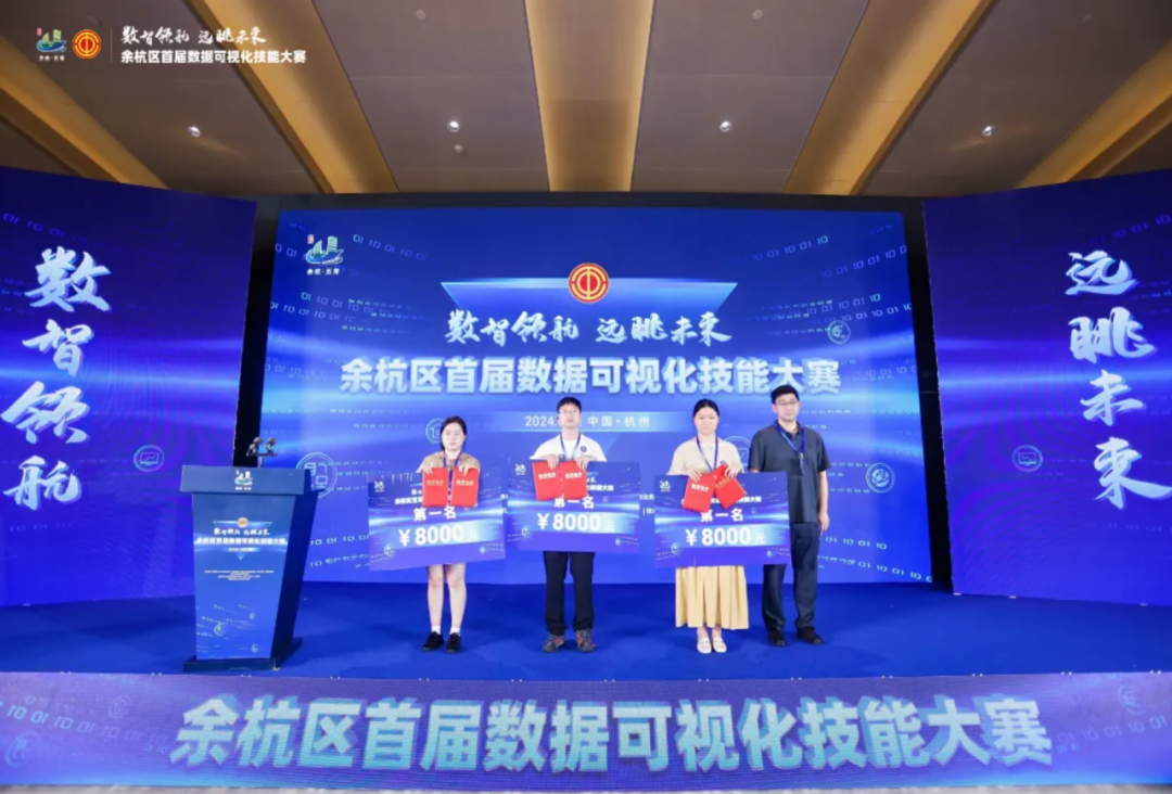 6月29日,余杭区首届数据可视化技能大赛圆满落幕。余杭区总工会,五常街道党工委,市委人才办、区财政局、区人社局等部门领导出席颁奖典礼。