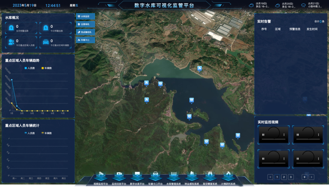 基于智能设备,对特定区域的人员和车辆流动进行详尽统计与分析,同时实时预警火灾情况。通过在水库现场安装摄像头,实现全方位实时监控,并将监控数据集成到可视化大屏幕上,方便管理者实时掌握现场情况。